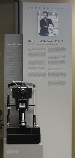 1959 年,伯纳德博士“伯尼”格罗曼在早上前往美国光学公司(现为 Reichert Technologies)的途中打开收音机,听到了有关青光眼患病率的公共服务公告。由于他的行业经验而熟悉眼压测量法,他想,“如果我能创造一种仪器,眼科医生可以用它来帮助诊断失明的主要原因,而无需接触角膜?”