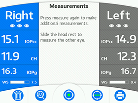 使用 Ocular Response Analyzer G3 进行测量是更快或更简单的了。只需轻触直观的用户界面,即可启动全自动对准和测量,同时显示角膜补偿眼压 (IOPcc)、角膜滞后 (CH)、Goldmann 相关眼压 (IOPg) 和波形评分 (WS)。